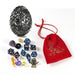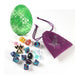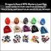 This hand poured resin Dragon's egg contains a premium dice set with a unique D4 and extra matching D20, art dice bag, metal and enamel art pin, plus some extra bits, bobs, and treasures.