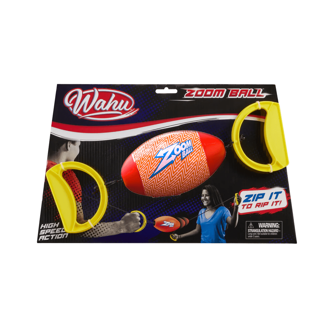 Grab a friend, find the perfect outdoor spot, and get ready to “Zip it to Rip it” with the original Wahu Zoom Ball! This sliding zoom ball makes it easy to get active and enjoy an exciting game where you compete to keep the ball from hitting your handles. Experience the thrilling, high-speed action between two players as they keep the ball Zooooooming back and forth across the ropes. It’s super easy to play – simply pull the large handles with all your strength to send the ball racing full-speed toward your opponent. For enhanced play and extra challenge, try standing on one foot, kneeling down, or changing arm movements to build strength and balance while having a blast! This sliding ball set comes with 1 Wahu Zoom Ball with a 7″ (17.8 cm.) length and 2 sets of handles, and it’s recommended for 2 players ages 8 and up.