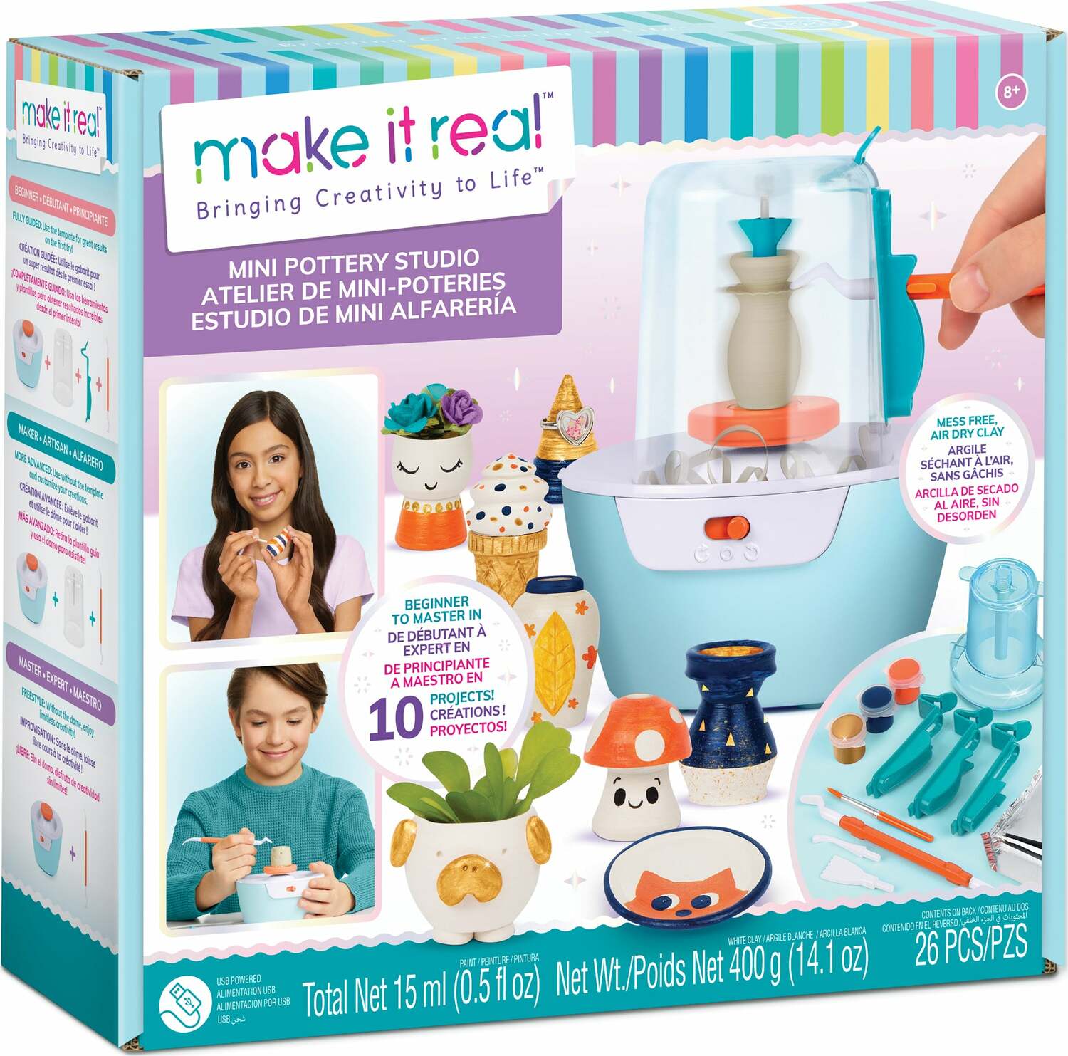 Perfect for your little artist, this Mini Pottery Studio will be a fun way to introduce ceramics to them. With the wheel, tools and more included, this is a great tool to let them express their creativity!